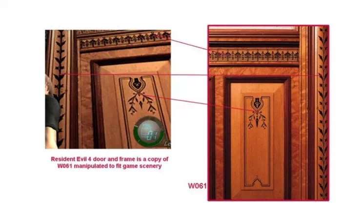 Il est difficile d'imaginer que Juracek prenne une photo de verre brisé et du design d'une porte intérieure d'un manoir en Italie et que les designers de Capcom reproduisent à l'identique le motif de verre brisé et le design d'intérieur sans avoir profité des photographies de Juracek.