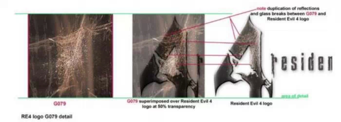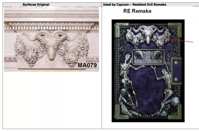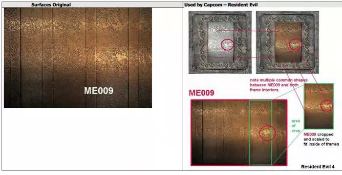 Par exemple, le logo de Resident Evil 4 contient des éléments de verre brisé photographiés en Italie, comme expliqué dans le dépôt de plainte :