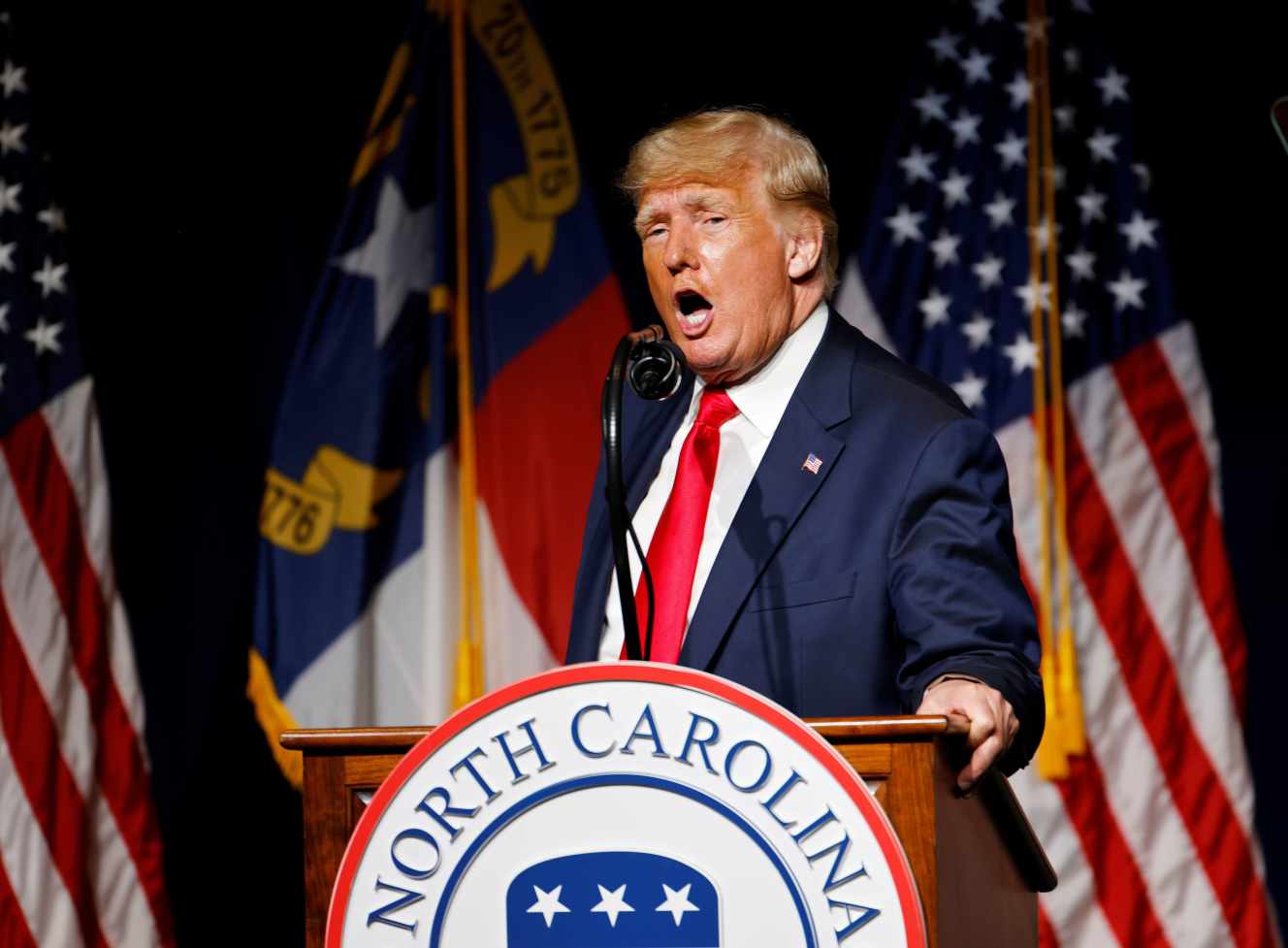 L'ancien président américain Donald Trump donne un discours à Greenville, lors de la convention du parti républicain de Caroline du Nord, le 5 juin 2021.