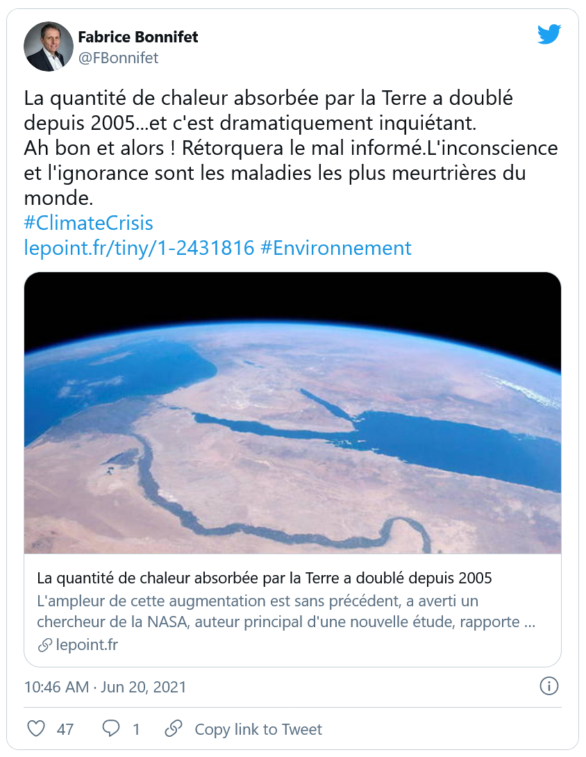 Le phénomène est en effet préoccupant : il a pour conséquences une nouvelle hausse des températures moyennes et une aggravation de la fonte des glaces et de la montée du niveau des océans. L'équipe de chercheurs estime maintenant qu'au vu de ces résultats, la quantité de chaleur que la Terre recueille doit impérativement diminuer, sous peine de voir la situation climatique s'aggraver encore davantage.