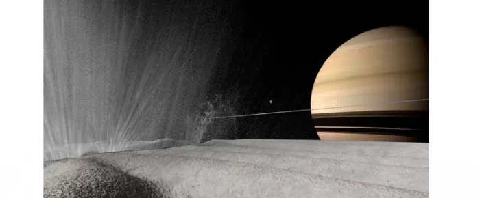 Encelade est, comme nous l'avons vu, une des lunes de Saturne. Lorsque la sonde Cassini a survolé pour la première fois Encelade en 2005, elle a révélé de très grands geysers à sa surface, qui projettent des particules d'eau dans le vide spatial.