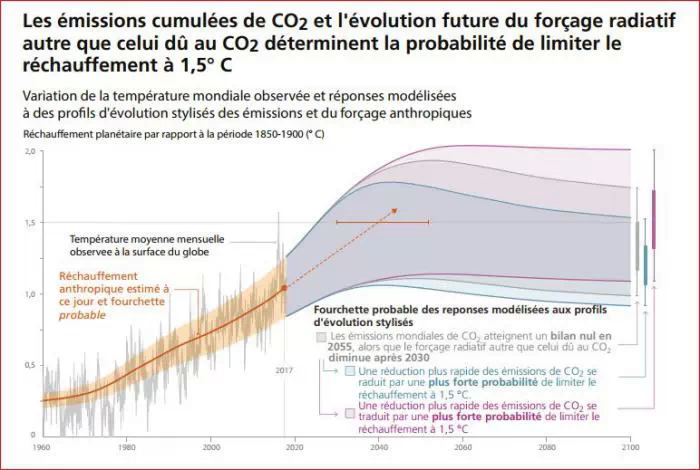 En effet, pour maintenir le réchauffement climatique entre 1,5°C et 2°C (un niveau de réchauffement qui posera déjà beaucoup de soucis), il est impératif d'atteindre le zéro carbone en 2050. Cet objectif implique de ne quasiment plus émettre de gaz à effet de serre et de compenser ce qu'on émet avec de la reforestation par exemple.