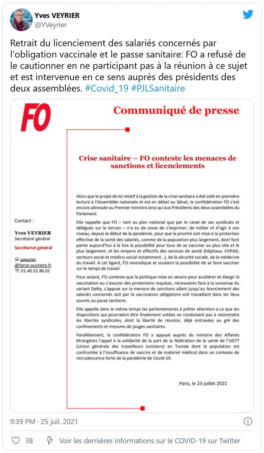 Un flou qui inquiète aussi les syndicats de salariés. « Même si menacer de licenciement un employé réfractaire n'était pas le meilleur argument pour le convaincre de se vacciner, ce qui a été voté est très bancal, décrypte Yves Veyrier, secrétaire général de FO. Cette suspension de contrat crée une situation d'insécurité pour le salarié. D'autant que le risque de licenciement n'est pas écarté. »