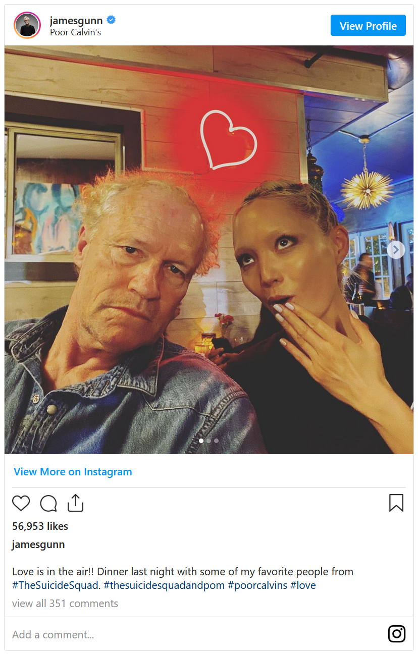 Après avoir dirigé chacun d'eux dans le MCU, il avait déjà été confirmé que tous ces acteurs travaillaient à nouveau avec Gunn dans le DCEU. Initialement, il devait faire jouer un rôle non spécifié à Dave Bautista, alias Drax dans le MCU, mais l'ancien catcheur n'a pas pu le faire en raison de son emploi du temps. Cependant, on apprend récemment qu'une autre star des Gardiens de la Galaxie a réalisé un caméo dans The Suicide Squad.
