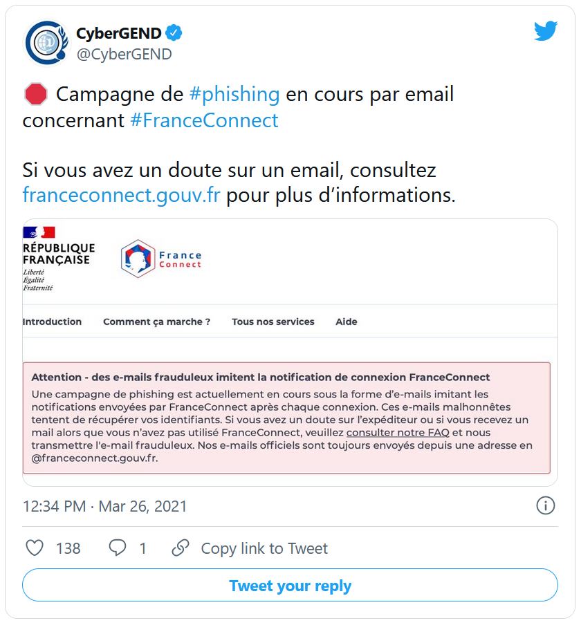 Alors comment rester alerte face à ce type d'attaques ? Premièrement en cas de réception du mail frauduleux, il faut vérifier l'adresse de l'expéditeur, afin de déterminer son anormalité. Connectez-vous afin de vérifier qu'aucune opération n'a été effectuée. Derrière, il faut prévenir les services concernés, et signaler l'escroquerie sur la plateforme Cybermalveillance.gouv.fr. Le Réseau des enquêteurs numériques et des acteurs de la prévention et de la protection numériques de la Gendarmerie nationale ont publié un tweet en ce début d'année dans lequel ses membres appellent à la vigilance. Enfin, et évidemment, changez votre mot de passe.