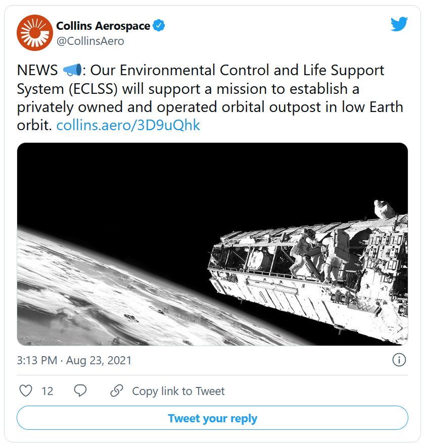 Le directeur du développement commercial de Collins Aerospace, Shawn Macleod, précise que ce contrat n'est pas le premier "système de contrôle environnemental et de survie" (ECLSS) que la société vend à une entreprise ou une personne privée.