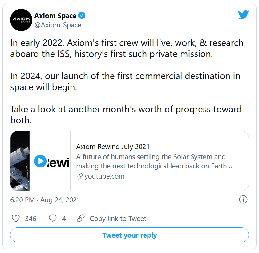 En effet, l'entreprise pourrait être le mystérieux client derrière cette demande car elle propose des voyages privés à destination de la Station Spatiale Internationale (ISS), et prévoit de construire sa propre station spatiale. De plus l'entreprise a annoncé qu'elle enverrait "la première mission privée de l'histoire" à bord de l'ISS au début de 2022.