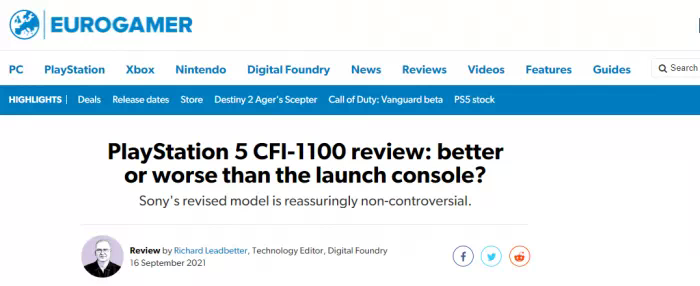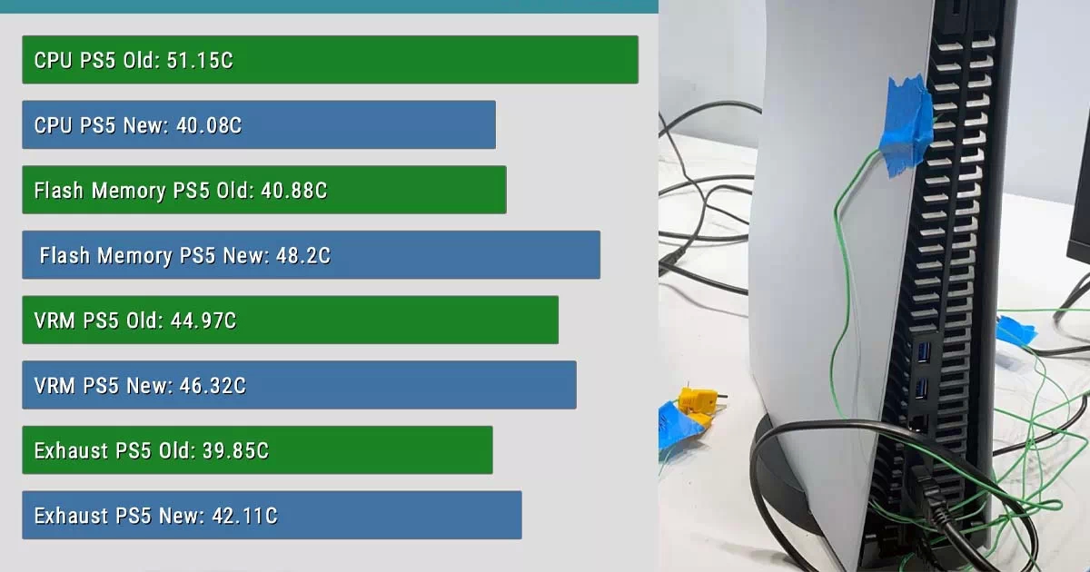 C'est un article d'Eurogamer qui a finalement mis fin au débat sur le refroidissement de la PlayStation 5, confirmant que le nouveau modèle est fonctionnellement identique à l'ancienne version. Sur les deux modèles, les tests de performance et ceux du hardware n'ont révélé aucune différence significative entre les deux. Le nouveau modèle CFI-1100 est environ 300 grammes plus léger que l'ancien, et si en effet la structure interne a un peu changé, c'est simplement que la gestion de la chaleur est gérée différemment sur cette version.
