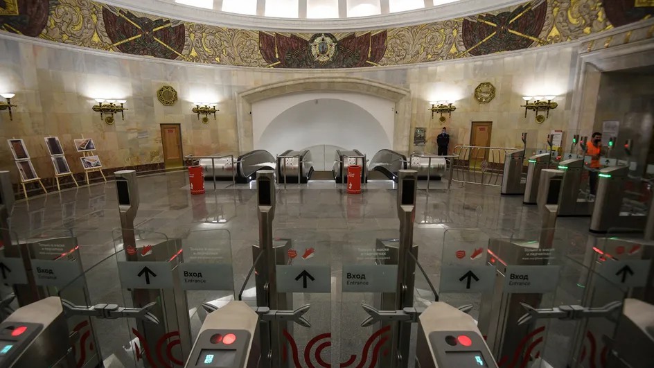 La staton Smolenskaya du métro de Moscou (Russie), le 9 juillet 2021.