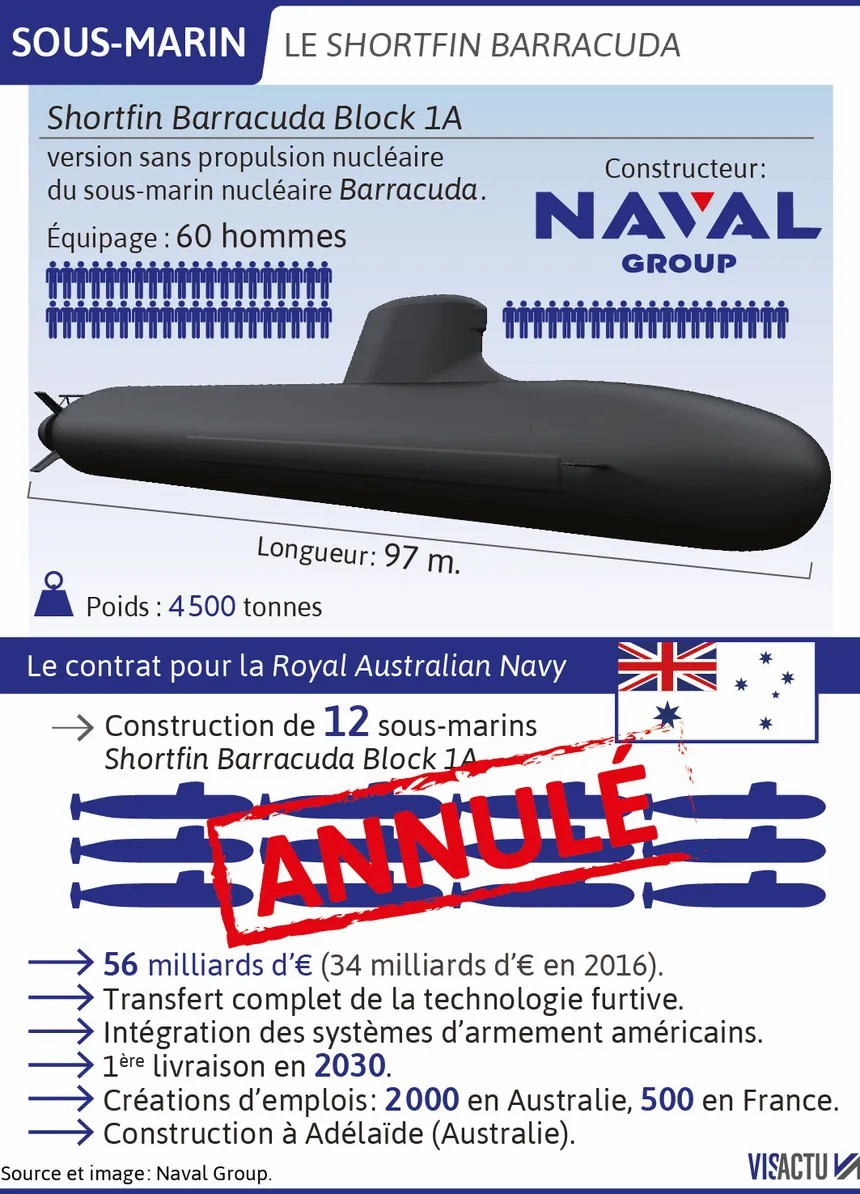 Le 15 septembre, quelques heures avant que Scott Morrison envoie la lettre à Emmanuel Macron annonçant la rupture du contrat, le ministère des armées et Naval Group reçoivent une notification australienne : un point d'étape faisant état de la satisfaction des autorités sur le déroulement du programme. Preuve que personne ne se doutait de rien : à ce moment-là, Naval Group était, selon son porte-parole, en train de préparer la visite à Cherbourg d'un haut gradé australien. La rupture du contrat semble donc être resté secrète jusqu'au dernier moment, y compris en Australie ou seules quelques personnes au plus haut sommet de l'État étaient dans la confidence.