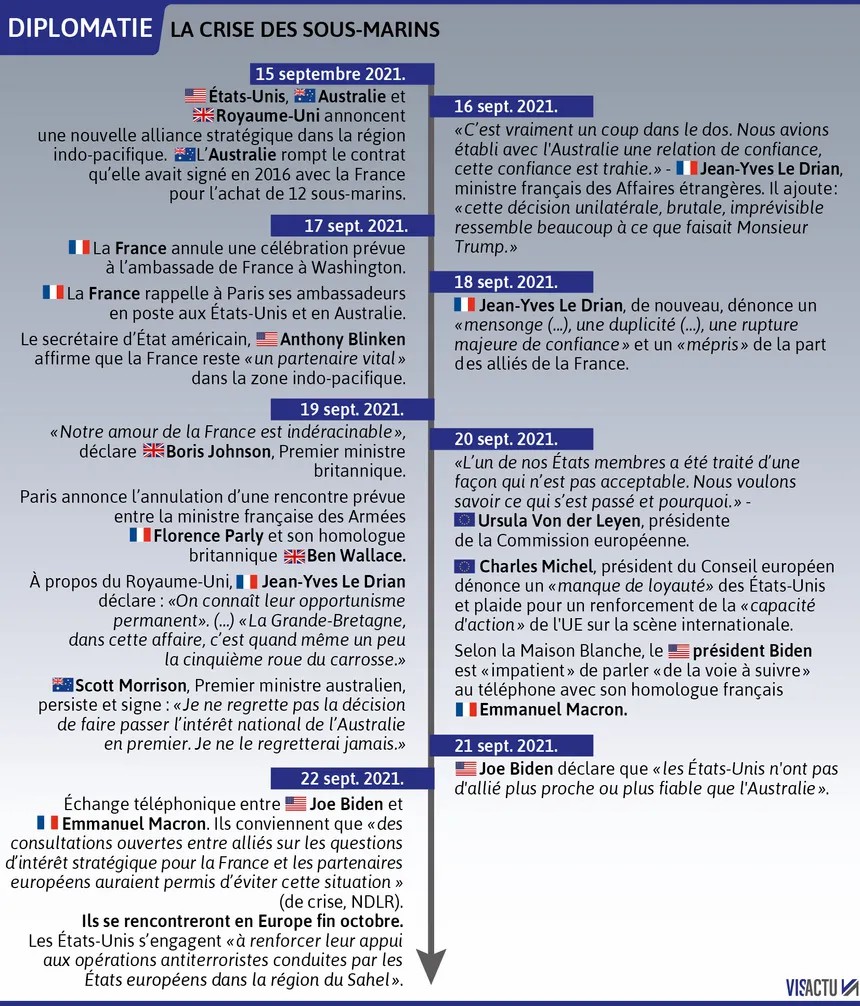 Des signaux d'alarmes existaient depuis février 2021, laissant entendre que le contrat des sous-marins australiens pouvait être menacé. La France semble s'en être inquiété, mais elle a été leurrée par une parole officielle qui a démenti jusqu'au bout.