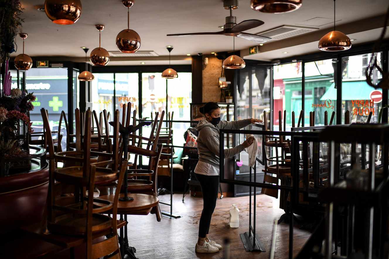 Une serveuse le 12 mai 2021, avant la réouverture des restaurants et des terrasses de café, le 19 mai.