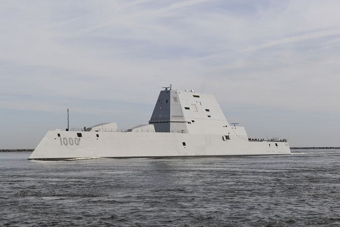 Le destroyer lance-missiles USS Zumwalt (DDG-1000), de la marine des États-Unis.