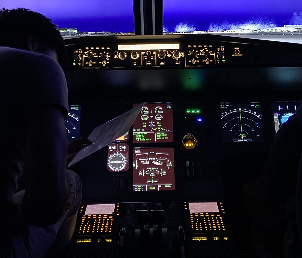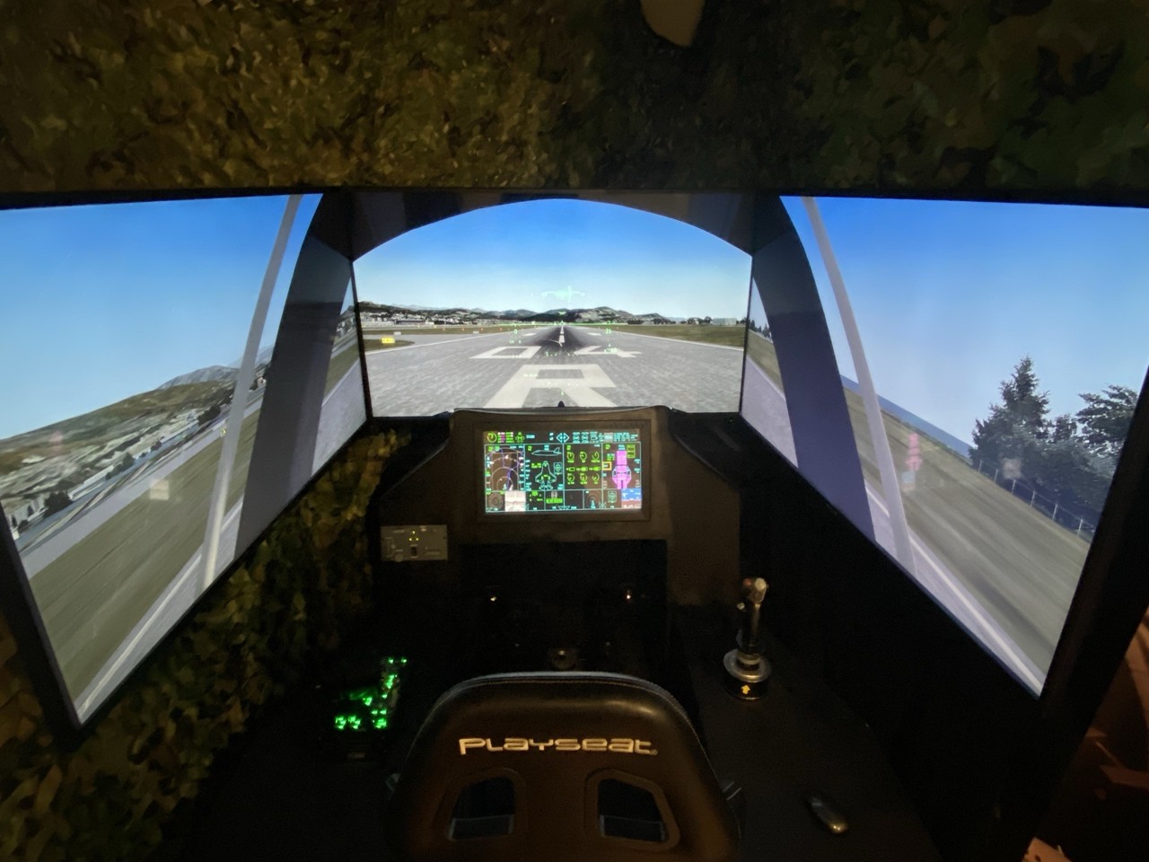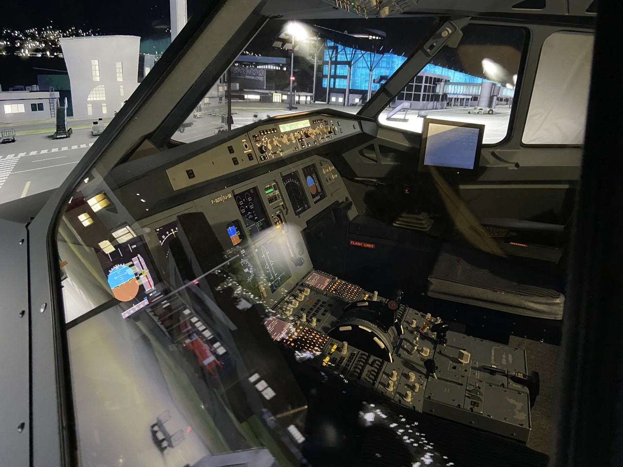 Le cockpit est entouré de plusieurs écrans reproduisant fidèlement différents aéroports mondiaux