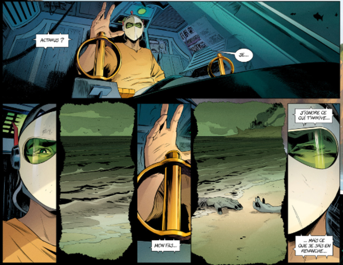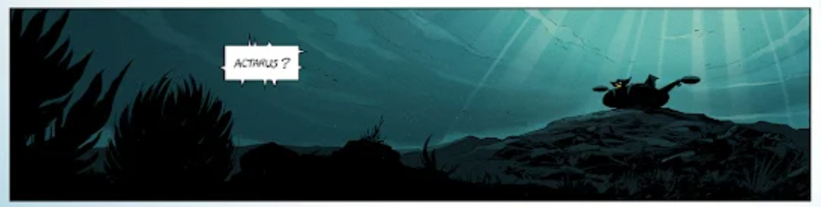 Dès la première case, on devine le vaisseau porteur englouti dans les profondeurs de l'eau. «Goldorak sous l'eau, cela faisait penser à un galion disparu, coulé, comme une épave de navire laissée à l'abandon, décrypte le dessinateur. Nous avons pensé bien sûr au Trésor de Rackham le Rouge... Cela ramenait aux vieux récits de piraterie...»