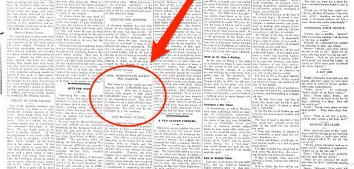Le journal avertissait déjà que l'atmosphère de la Terre était en train de changer à cause de la manière dont les économies mondiales accéléraient la production de combustibles fossiles : « la consommation de charbon affectant le climat », pouvait y être lu en titre.