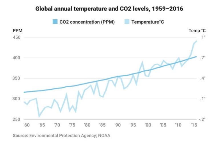 En effet, en 2016, le population mondiale a consommé plus de 5.3 milliards de tonnes de charbon. L'atmosphère de la Terre contient désormais une quantité de CO2 sans précédent : sa concentration a dépassé les 411 parties par million, le niveau le plus élevé depuis 800'000 ans.