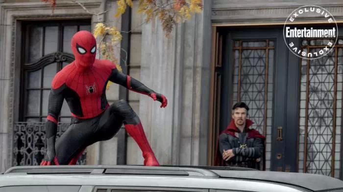 Enfin, Entertainment Weekly a également dévoilé deux nouvelles images du film avec Tom Holland revêtu de son costume de super-héros à côté de Dr Strange et une autre en compagnie de MJ, tous les deux s'envoyant en l'air !