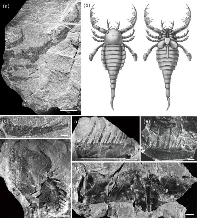 Il s'agit d'une nouvelle espèce découverte disposant de pinces venimeuses et mesurant la taille d'un chien. Effectivement, ce scorpion, quand il vivait sur Terre, mesurait plus d'un mètre de long !