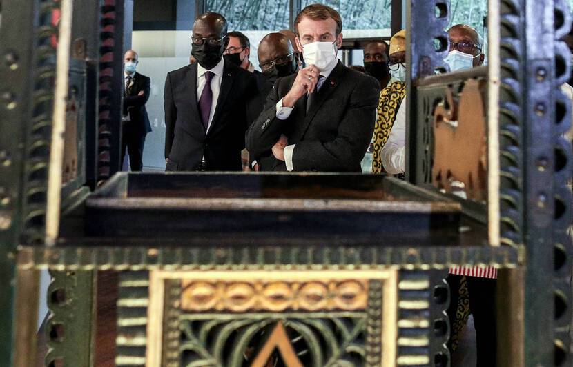 Lors de son discours de Ouagadougou en novembre 2017, Emmanuel Macron s'était engagé à rendre possible dans un délai de cinq ans les restitutions temporaires ou définitives du patrimoine africain en France. Sur la base d'un rapport remis par les universitaires sénégalais et française Felwine Sarr et Bénédicte Savoy, il avait décidé de rendre 26 œuvres réclamées par les autorités du Bénin.