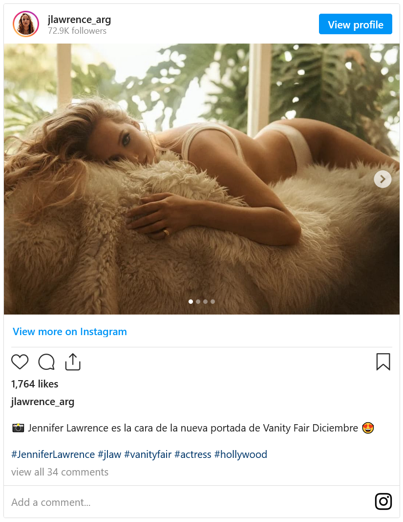 Cette interview était également l'occasion pour l'actrice de revenir sur les différentes sources de stress qu'elle avait et rencontre toujours. Elle mentionna donc le piratage massif de 2014 entrainant la diffusion de photos intimes de Lawrence sur internet qui s'étaient largement répandues. Elle évoqua également l'affaire avec le Bigard Magazine, et conclua : "N'importe qui peut regarder mon corps nu sans mon consentement, à n'importe quel moment de la journée. Quelqu'un en France vient de les publier. Mon traumatisme existera pour toujours... Avez-vous déjà voulu être actrice ?" finit-elle en souriant faussement.