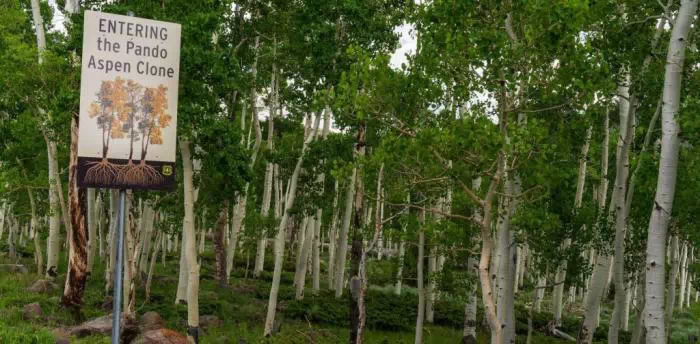 Mais un autre écosystème est en train de mourir. Son nom : le Pando. Du latin « je m'étends », le Pando est un arbre, ou plutôt une immense colonie clonale (création de structures complexes de forme coloniaire. Cet aspect de colonie est une grande force pour l'arbre qui lui permet de résister à de nombreuses attaques et de continuer à pousser quand son tronc s'est vidé mangé par les champignons), de peupliers faux-trembles (Populus tremuloides), située à l'ouest des États-Unis dans l'Utah. Cette véritable forêt qui n'est en fait qu'un arbre, ou plutôt un immense bosquet de peupliers chatoyants (arbres à petites feuilles et à tiges épaisses et blanchâtres, appelés trembles) et ses 47 000 troncs, est âgée de 80.000 ans au moins, et s'étend sur près de 43 hectares.