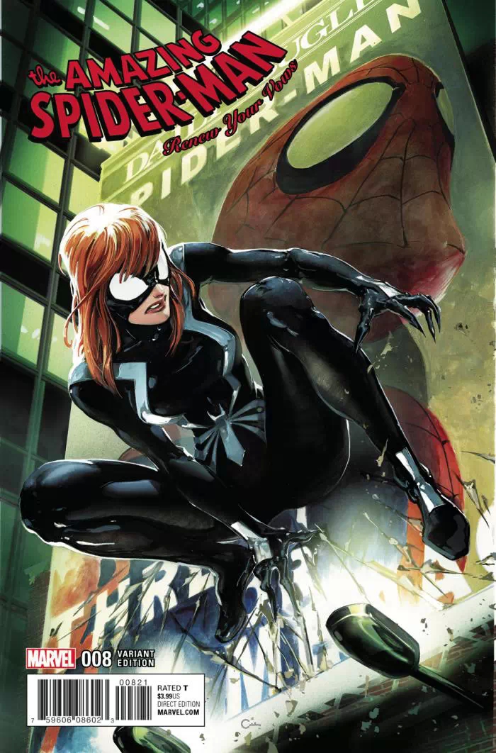 Elle avait ensuite revêtue le costume d'Iron Spider pour combattre le méchant Regent. Mary Jane est également devenue l'héroïne nommée "Spinneret" dans la série de comics The Amazing Spider-Man : Renew Your Vows, en combattant le crime aux côtés de Peter et de sa fille Annie May Parker.