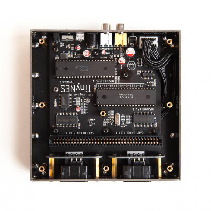 En effet, cela fait trois ans que les développeurs travaillent sur le projet. Ils l'ont enfin rendu disponible sur la plateforme Crowdsupply récemment en estimant avoir besoin de 20 000 dollars pour mener leur projet à bien. Actuellement, ils ont récolté 38.435$, soit déjà 192% du total du projet. La campagne de financement se termine à la fin du mois, pour un envoi des colis prévu dès le mois de mai. La console se place comme une concurrente de l'Analogue NT, une autre console permettant l'usage de cartouches NES. La TinyNES se veut très proche de ce que proposait Nintendo entre 1983 et 1995, avec des puces RP2A03 et RP2C02. Attention cependant, si la console affiche une compatibilité pour tous les jeux sans blocage régional ainsi que l'usage des manettes officielles, il faudra également y jouer sur une télévision d'époque, puisqu'elle ne dispose pas de composante HDMI. Il faudra donc un écran doté d'une prise RCA composite NTSC, ainsi qu'une connectique RCA Audio Mono.