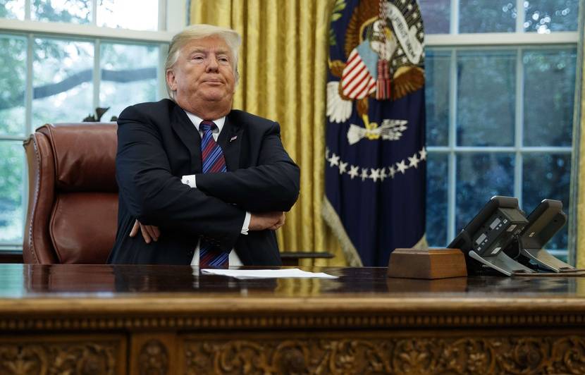 Donald Trump, les bras croisés dans le bureau ovale de la Maison Blanche, le 27 août 2018.