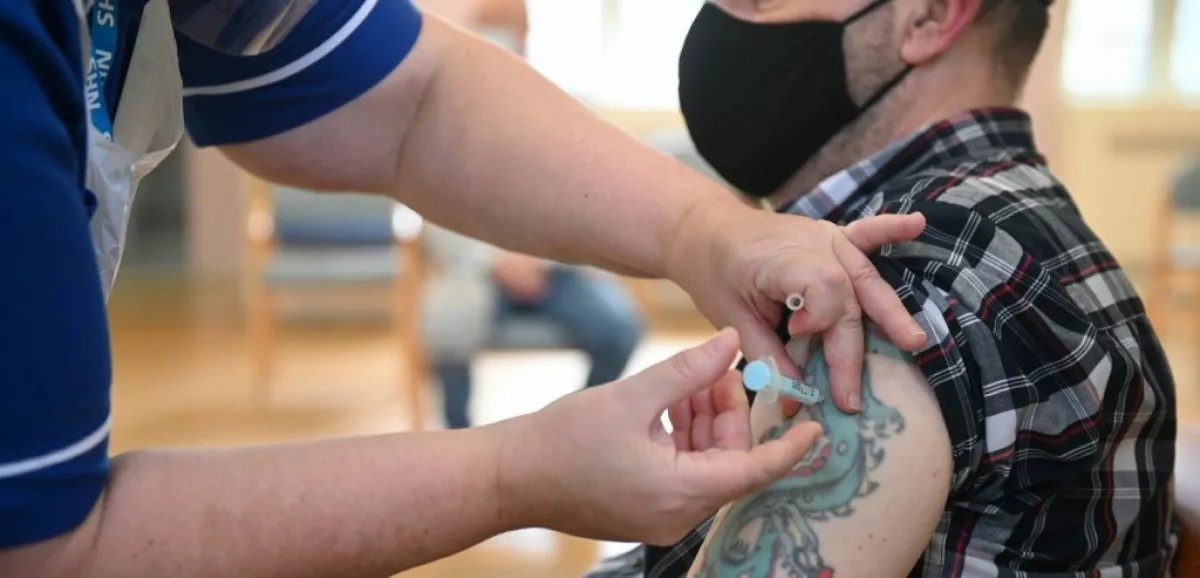 Un homme reçoit une dose de vaccin contre le Covid dans un hôpital de Belper, en Angleterre, le 16 décembre 2022