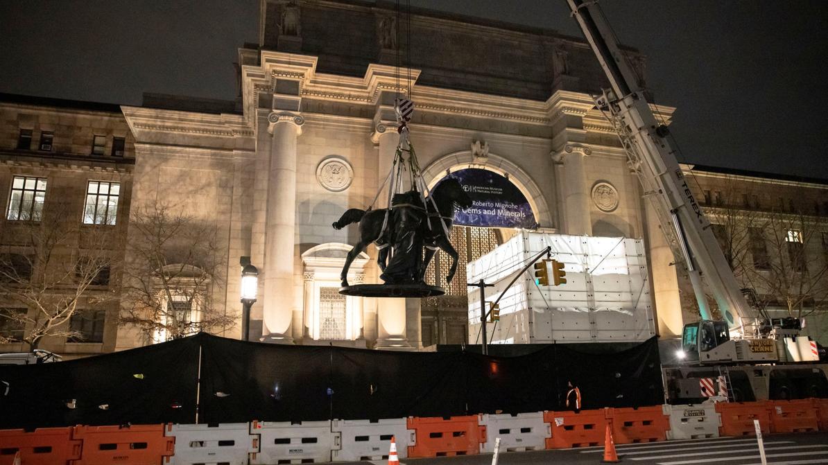 Des ouvriers ont démonté mercredi 19 janvier une imposante statue du président Theodore Roosevelt à l'extérieur du Musée américain d'histoire naturelle de New York. La Statue équestre de Theodore Roosevelt, commandée en 1925 et dévoilée au public en 1940, représente Roosevelt sur un cheval, avec à ses côtés un Amérindien et un Africain à pied. Elle a été critiquée par certains comme un symbole de colonialisme et de racisme.
