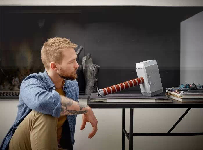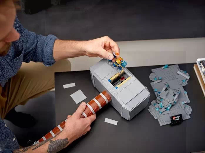 Grâce aux images disponibles sur le site LEGO, les fans peuvent avoir un premier aperçu du LEGO Mjolnir. Les images montrent un grand ensemble LEGO, avec le marteau apparemment assez grand pour être tenu dans une main d'adulte. Les images montrent également que le marteau dispose d'un compartiment caché, dans lequel on peut placer un mini-gant de Thanos ou une figurine du dieu de la foudre, entre autres.