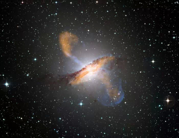 Image en fausse couleur de la radiogalaxie Centaurus A.
