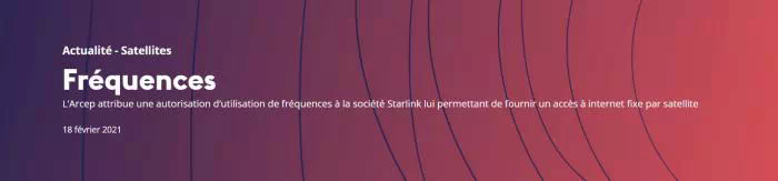 Dans le cadre du projet Starlink, l'Arcep, comme on peut le lire sur son site, a eu pour rôle "d'étudier, et d'autoriser le cas échéant, l'exploitation des fréquences déjà enregistrées à l'Union internationale des Télécommunications (UIT) au niveau spatial, sur le territoire national". Et en l'occurrence, le verdict rendu pour Starlink, le 9 février 2021, était le suivant :