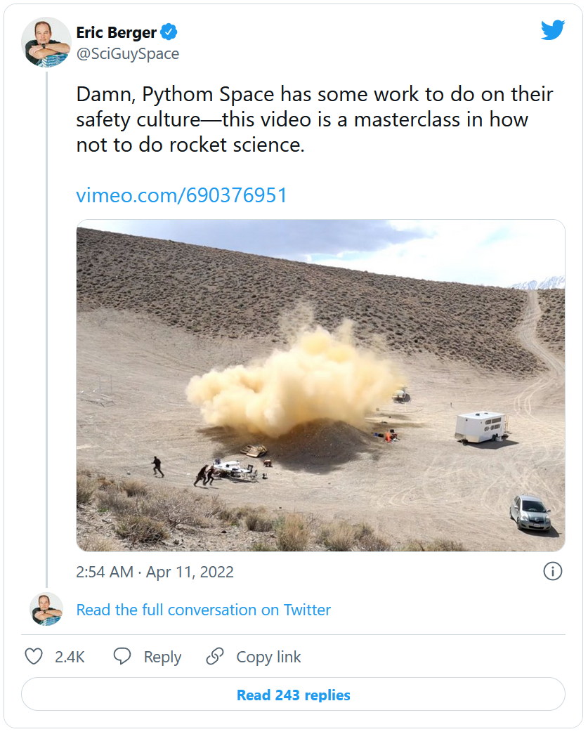 L'histoire commence le lundi 11 avril 2022, quand Eric Berger, rédacteur en chef d'Ars Technica, publie sur son fil Twitter, un post peu élogieux venant tacler la jeune start-up.