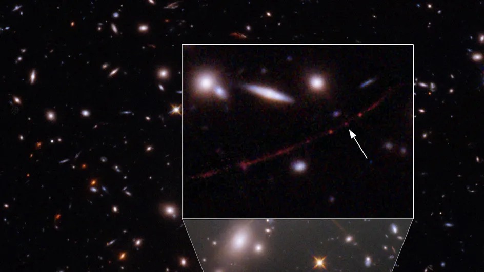 Le télescope spatial Hubble a détecté la plus lointaine étoile jamais observée. Celle-ci a été baptisée Earendel et sa lumière a voyagé durant 12,9 milliards d'années pour arriver jusqu'à nous. Rivalisant avec les plus grosses étoiles connues, les scientifiques estiment que sa masse équivaut au moins à 50 fois celle de notre Soleil et qu'elle est des millions de fois plus lumineuse que lui.