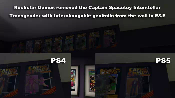 La modification de la poupée Captain Spacetoy a été signalée au début du mois par JayProspero, un utilisateur de Reddit, qui a partagé une image comparant la version PS4 avec la nouvelle version remasterisée sur PS5. On constate alors que la poupée Captain Spacetoy qui portait un pull rose vif et qui avait des "organes génitaux interchangeables" a clairement disparu.