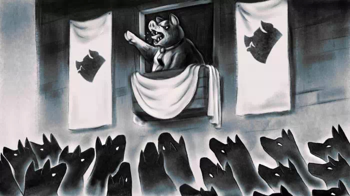Publié en 1945, La Ferme des Animaux est une nouvelle qui raconte l'histoire d'un groupe d'animaux de ferme qui se rebellent contre leur propriétaire humain, dans l'espoir de créer une société où ils pourront être tous égaux, libres et heureux. Cette œuvre est à la fois une fable dystopique mais aussi une allégorie satirique. Orwell, socialiste démocrate et fervent opposant au totalitarisme, avait écrit cette nouvelle pour refléter les évènements ayant précédé la révolution russe de 1917 et l'évolution de l'Union soviétique avec la montée en puissance de Staline.
