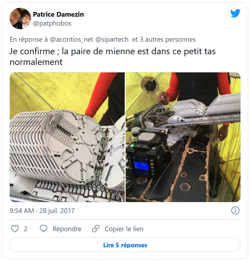 Et pour ce qui est du coût d'une telle réparation ? Généralement le matériel n'est pas forcément ce qui revient le plus cher : 1 à 10 euros le mètre de fibre optique s'il faut en rajouter des morceaux, contre quelques centaines d'euros pour un boîtier. Mais il faut ajouter la main-d'œuvre qui augmente rapidement en fonction du nombre de techniciens sur place et du nombre de fibres (qui influence directement sur le temps). Surtout en période de confinement.