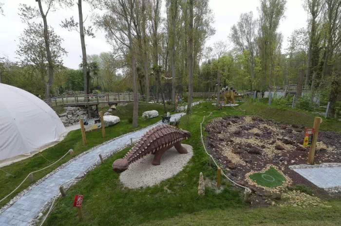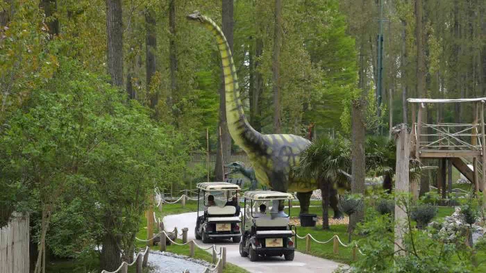 Un parc qui ne manquera pas de s'étendre par la suite avec, à terme, pas moins de 25 dinosaures. Les visiteurs pourront tout de même profiter d'un dose de fraîcheur avec une nature prédominante et des sentiers balisés par des ponts de bois ou de barrières en corde. Pour découvrir ce Dino Parc, deux parcours sont proposés aux visiteurs : l'un en voiturette électrique et l'autre à pied, tout en jouant au disc-golf, une discipline qui consiste à lancer un disque volant vers des cibles. Pour pimenter votre parcours, et vous faire découvrir la faune d'époque, lesdites cibles sont positionnées à proximité des lieux d'intérêt du parc, qu'il s'agisse d'un dinosaure ou d'un tunnel dans lesquelles sont retrouvées des peintures rupestres façon Lascaux.