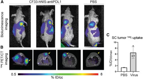La version du virus qui fait actuellement l'objet d'essais cliniques produit le symport d'iodure de sodium humain (hNIS), une protéine qui permet aux chercheurs de visualiser et de surveiller la réplication virale, et qui offre un moyen supplémentaire d'endommager les cellules cancéreuses en ajoutant de l'iode radioactif.