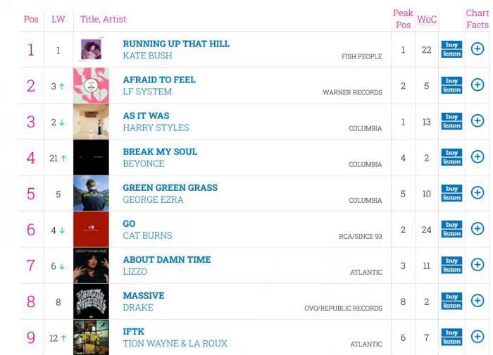 La saison 3 nous avait introduit l'excellente chanson Never Ending Story de Limahl et Beth Anderson chantée par Lucas et sa copine Suzie lors de la poursuite avec le Flagelleur Mental. Comme s'il s'agissait d'un cahier des charges, la saison 4 a repris ce concept en introduisant une musique chère au coeur de Max, lui permettant d'échapper au contrôle mental de Vecna. Et cette chanson, c'est Running Up That Hill de Kate Bush. Grâce à la série, la chanson a reçu une nouvelle popularité extrêmement puissante, 37 ans après sa sortie, la plaçant à la fois dans le Top 10 des charts aux États-Unis ainsi qu'en 1ère position dans le classement britannique. Un succès que Kate Bush n'explique pas dans une interview dans l'émission Woman's Hour sur BBC Radio 4 :