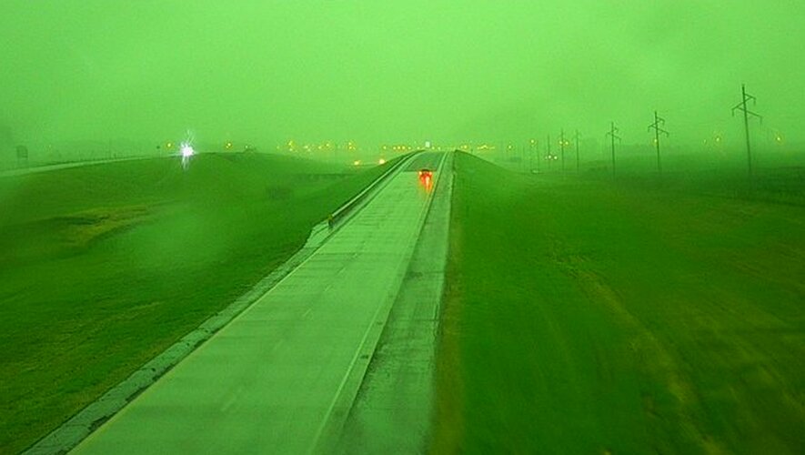 Même si les Américains sont habitués à subir les affres d'orages de ce type, appelés Derecho, qui correspondent à des puissantes tempêtes de vent, la couleur verte n'est pas fréquente, comme le rapporte le New York Times.