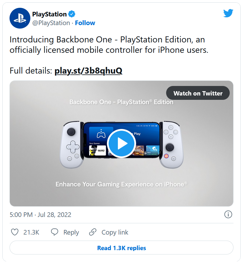 Attention toutefois, il ne s'agit pas d'une manette construite par PlayStation, bien qu'elle en arbore le design. Dans un tweet ainsi qu'un billet sur son site, PlayStation a souhaité présenter la Backbone One - PlayStation Edition, une manette à destination des joueurs iPhone. Une manette sous licence qui permettra aux joueurs sur mobiles de se rapprocher au mieux des sensations de jeux consoles ou PC.