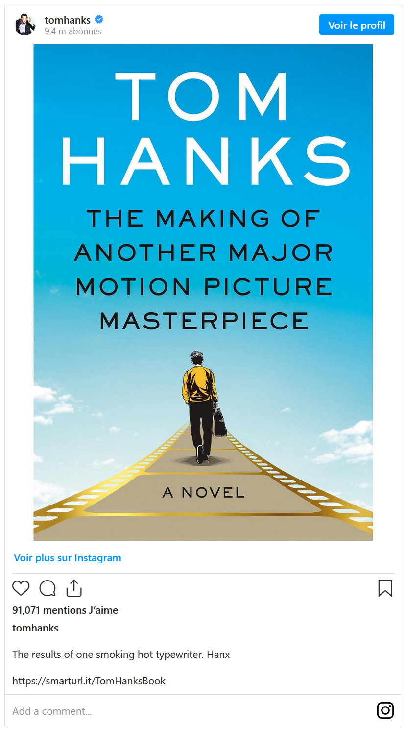 Quant à The Making of Another Major Motion Picture Masterpiece, il s'agit d'un livre fictionnel qui raconte le récit de plusieurs personnages tels qu'un soldat, son neveu de 5 ans ou un réalisateur dont les destins sont liés. Tom Hanks s'est inspiré de ses expériences passées à Hollywood pour écrire son livre :