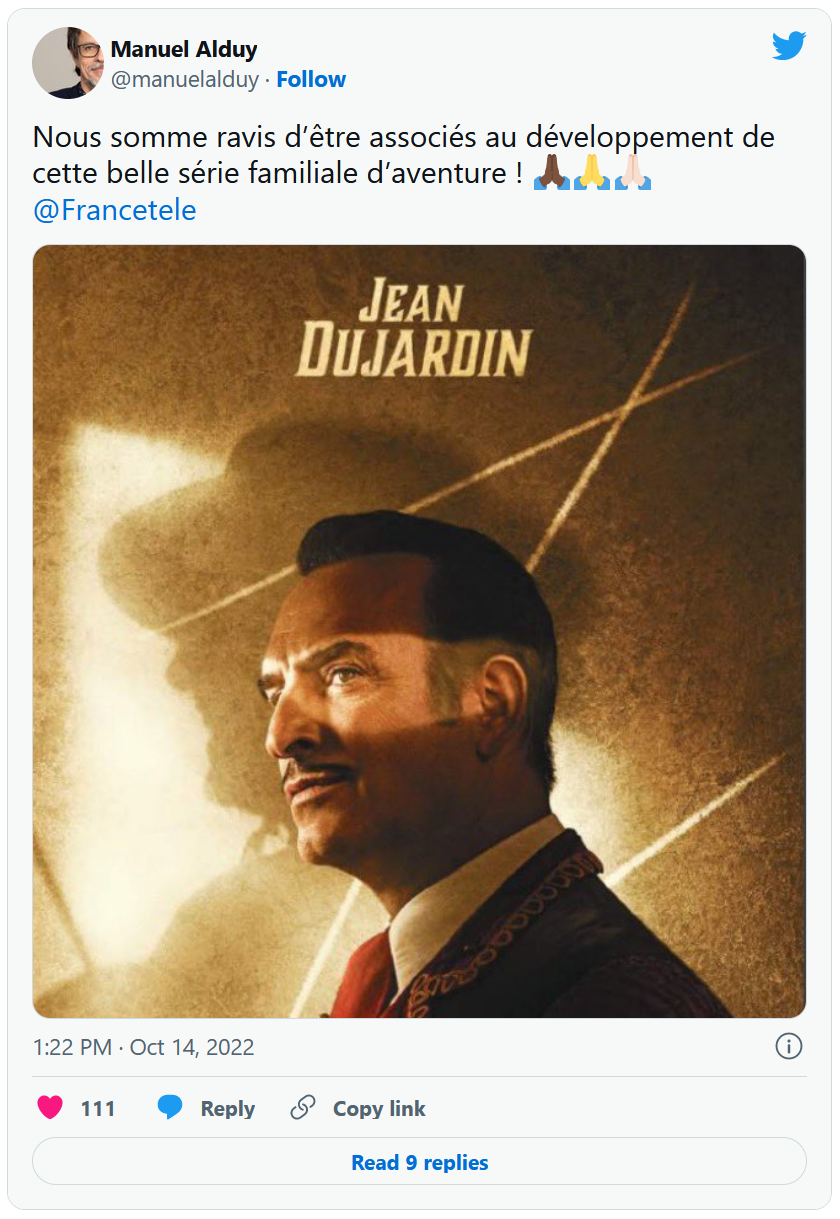 Dans son tweet, on peut voir une première affiche de la série avec Jean Dujardin incarnant Don Diego de la Vega, l'alias public de Zorro, dont l'ombre portée sur le mur et sa signature fétiche (le fameux "Z" du nom du justicier) ne laisse place à aucun doute.