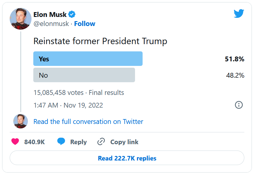 Comme expliqué plus haut, cette étude a été réalisée avant l'arrivée d'Elon Musk au pouvoir chez Twitter. Il sera intéressant d'analyser l'évolution durant le deuxième semestre 2022, mais la qualité des contenus du réseau social risque fortement d'être dégradée. Notamment parce que le milliardaire s'est débarrassé de la totalité des équipes de modération du contenu et de lutte contre la haine en ligne. Il y a donc beaucoup moins de personnel apte à traiter les demandes de suppression actuellement. D'autres enquêtes, comme celle de The Washington Post, révèlent que certains mots considérés comme haineux ou racistes ont connu des pics de popularité depuis le rachat par le patron de Tesla. C'est le cas du mot "nègre", connoté fortement péjorativement qui, dans les 12 heures suivant le rachat de Twitter, a bondi de plus de 500% d'utilisation.