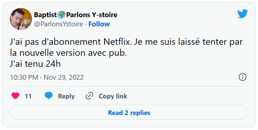 Disney, qui vient d'essuyer un nouvel échec avec ce flop au box-office, n'est pas le seul géant du divertissement à être en mauvaise posture. En effet, Netflix semble également traverser une passe difficile. Il faut dire que le géant du streaming est en compétition directe avec Amazon Prime Video, Hulu, OCS... Et surtout Disney+, que Bob Chapek, l'ancien PDG de la firme aux grandes oreilles a particulièrement développé en 2021 et 2022 ! Déjà, la plateforme de streaming a lancé une offre à 5,99 € par mois (son tarif le plus bas), qui comprend un certain nombre de publicités par heure. Un abonnement qui ne fait pas l'unanimité auprès des téléspectateurs, mais qui se verra néanmoins diversifié dans l'avenir.
