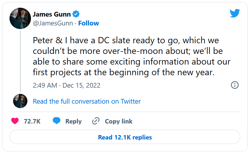 L'arrivée de James Gunn à la tête de DC Studios n'est pas passée inaperçue ! Le réalisateur, nommé co-directeur avec le producteur Peter Safran, est en train de concevoir un plan pour sauver l'univers cinématographique de Batman et Wonder Woman. Un plan qui risque de lui créer de nouveaux ennemis : sa décision concernant le Superman d'Henry Cavill a rendu les fans furieux, et ce ne sera sans doute pas son seul verdict polémique. D'ailleurs, on se demande bien ce que vont penser les fans du DCEU de sa nouvelle annonce !
