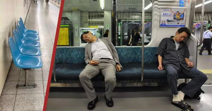 Effectivement, à plusieurs reprises, des personnes alcoolisées attendant que le métro arrive se sont levées en direction des rails alors qu'aucune rame n'était à quai. De ce fait, pour éviter qu'un accident ne se produise, la West Japan Railway Company a eu l'idée de disposer les sièges de cette façon afin que les personnes en état d'ébriété ne se retrouvent pas sur les rails.